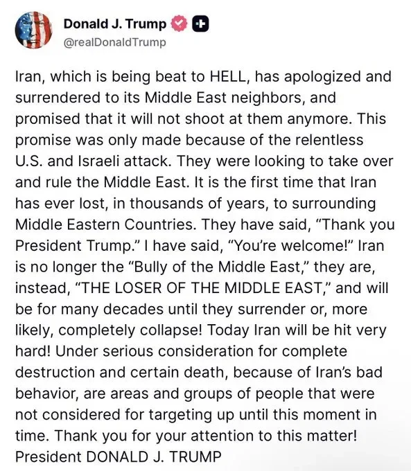This Post from Donald Trump should further solidify my assertions regarding Iran being used to subjugate other Middle Eastern regions. Especially Iraq given that they are in position to become the new power in the region.
