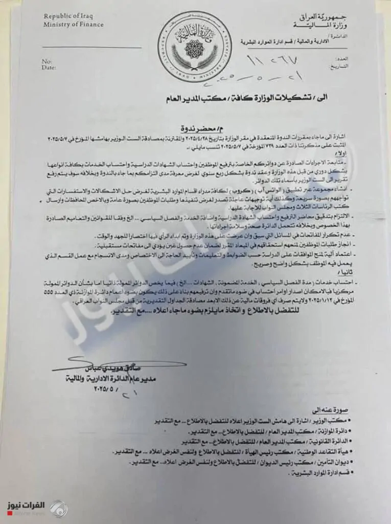 he Ministry of Finance has issued new directives to its various departments and offices aimed toward addressing worker grievances and calculating certificate and services, emphasizing the want to adhere to civil service requirements and administrative integrity.